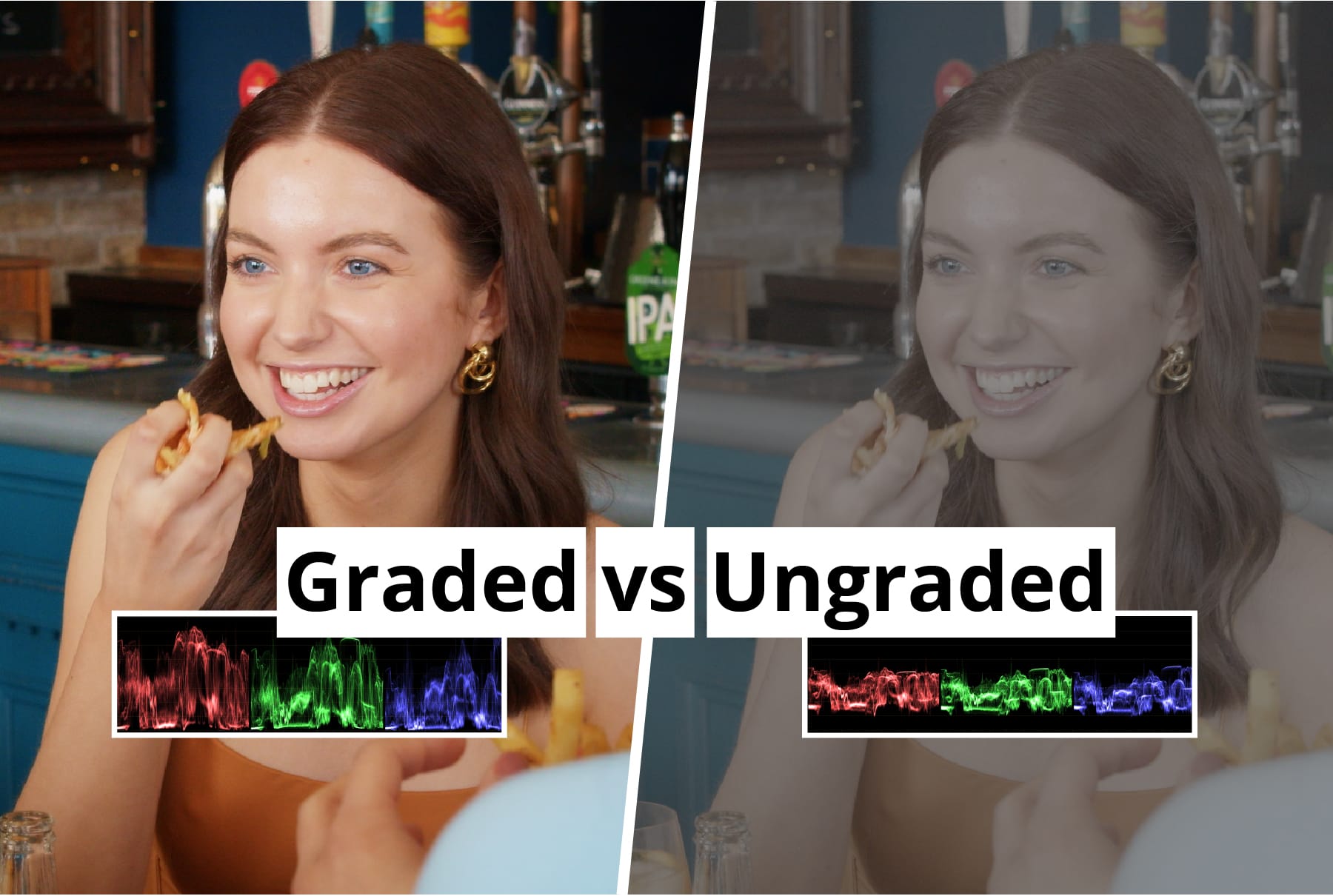 Colour grading really starts the moment you are stood behind the camera looking at the scene, noticing the warm Edison bulbs that you will later add a glow to in the grading process, picking out the colourful elements of a dish that you want to stand out, or just seeing where the specular highlights are and exposing accordingly.