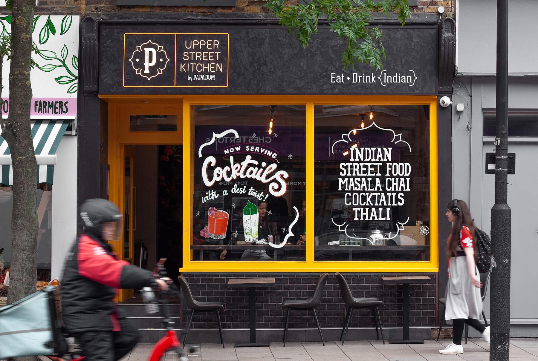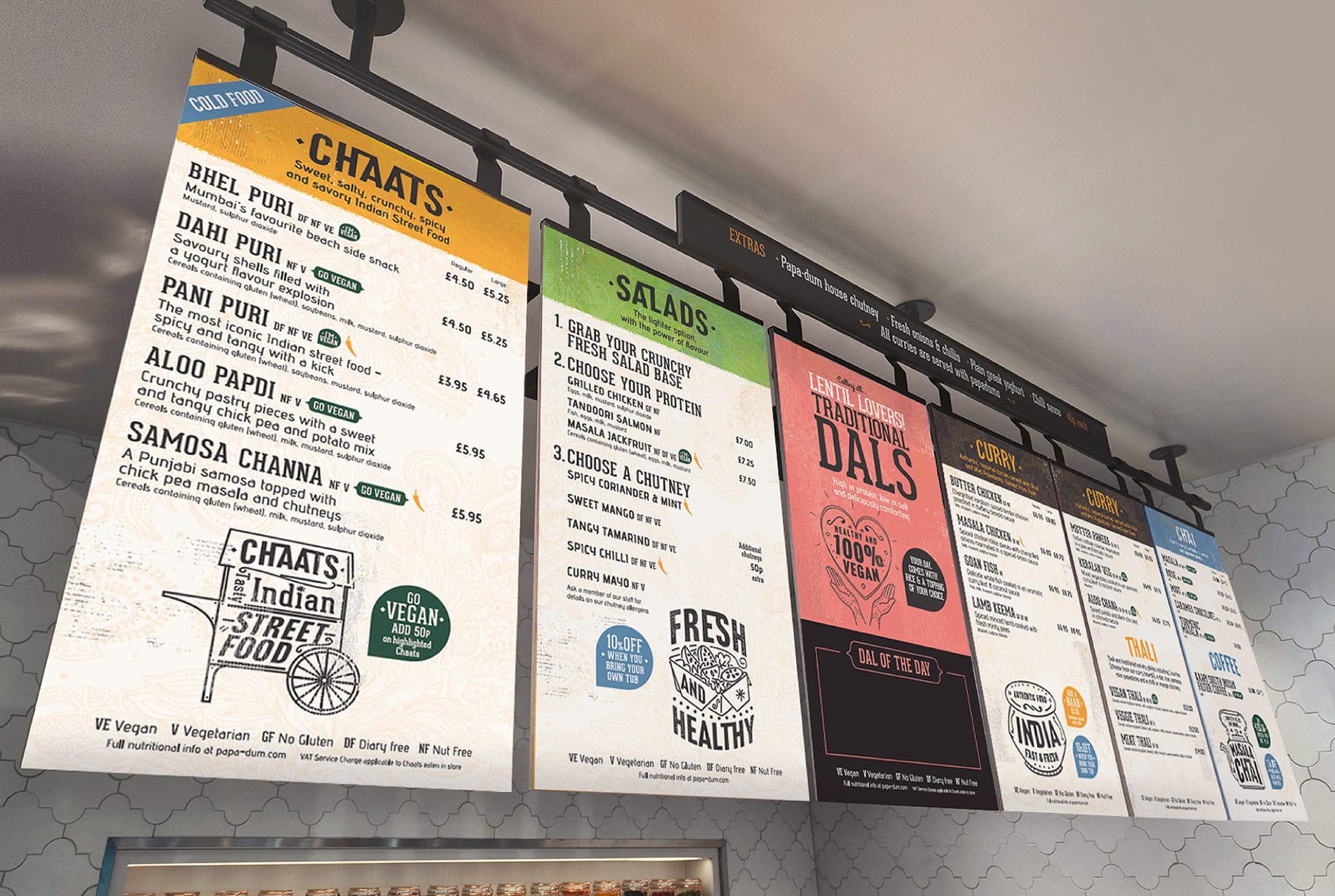 Having successfully branded Papa-Dum we were asked to create a street version for new sites rolling out in London. The sister concept focuses on street food and bespoke Indian cocktails with an edgier environment.