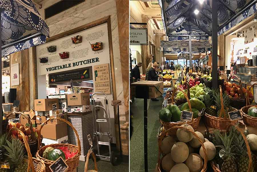 A fruit and vegetable market – beautiful and featuring some wonderous produce – and including a ‘Vegetable Butcher’ who will chop, dice or slice your vegetables FREE, and give you some helpful advice and tips!