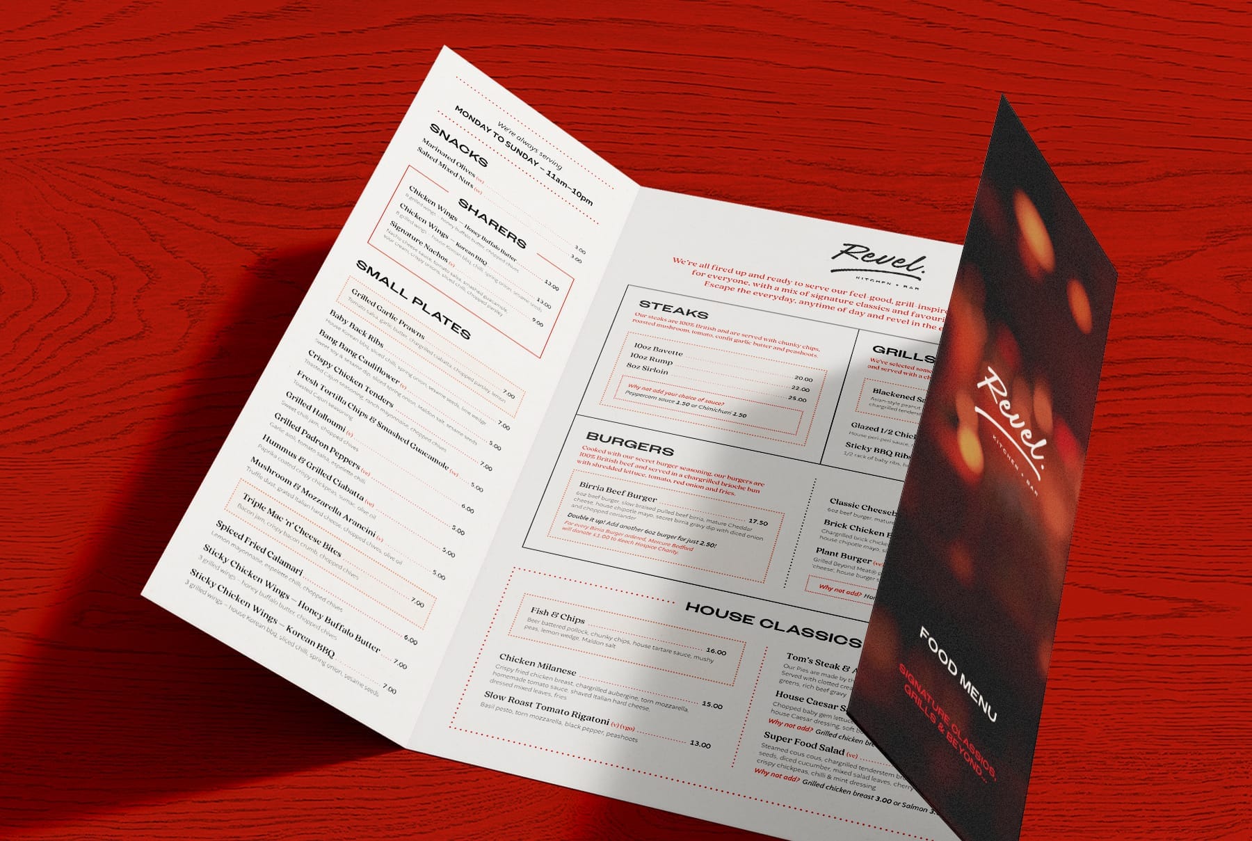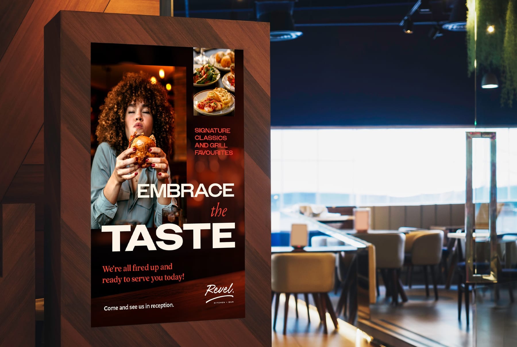 With a heavy focus on dishes inspired by the grill, the premise of the offer was everything from the high street, but done even better, so the new brand had to have a wide appeal, offering a delicious mix of crowd-pleasers and comfort food at all times of the day.We handcrafted an identity to act as a sign off for the brand, along with a fully adaptable design system, that touched on the personality of the location in Bedford, that would consistently work across all communication touchpoints.